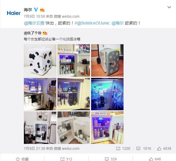 孫曉云女士梅花網(wǎng)傳播業(yè)大展上透露,運(yùn)營著海爾官微的是一群平均年齡在1993年的90后,他們熱情又鬼點(diǎn)子多,領(lǐng)導(dǎo)給予了他們充分的信任,他們擁有著自主的決策權(quán)。當(dāng)一個熱點(diǎn)出來了,他們反應(yīng)熱點(diǎn)的能力非常迅速,想發(fā)的稿件從來不需要給領(lǐng)導(dǎo)審核,因此每一個新熱點(diǎn)出來,你都能第一時間看見海爾的身影。